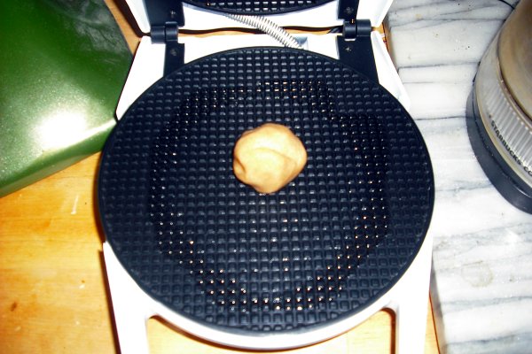 Od ohlađenog testa praviti kuglice veličine 30ak grama i peći ih u pekaču za vafle, minut-dva, dok ne dobiju finu boju.